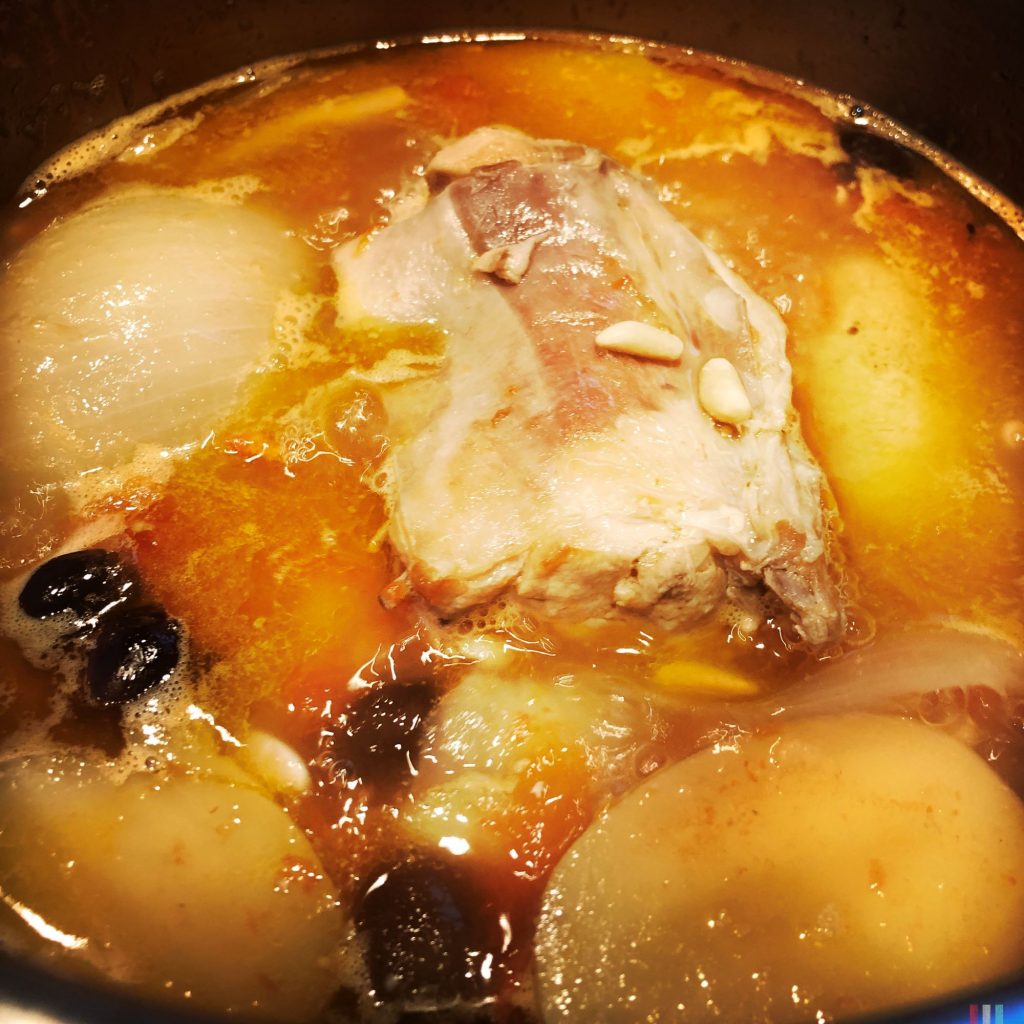 Das Kaninchen (wenn man will auch die Zwiebel) erst in einer Pfanne kurz anbraten, dann in einem Schmortopf, bis die Kartoffeln gar sind, auf kleiner Hitze köcheln – fertig! Yup, genauso einfach ist es!